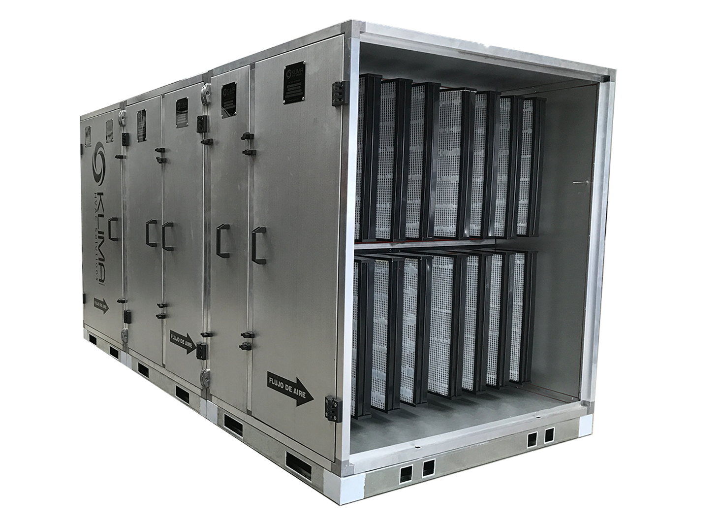 Los bancos de filtración KLIMA HVAC Solutions serie KFU han sido diseñados para ser incorporados en sistemas de tratamiento de aire en donde es requerido incorporar una o varias etapas de filtración, los filtros pueden ser montados lateralmente en el riel o de manera frontal en marcos portafiltros con sujetadores tipo P-CLIP.